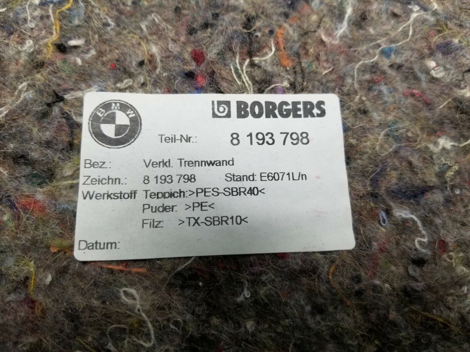 01 02 03 04 05 BMW E46 Sdn Rear Trunk Partition Seat Back Carpet OEM 125k Miles