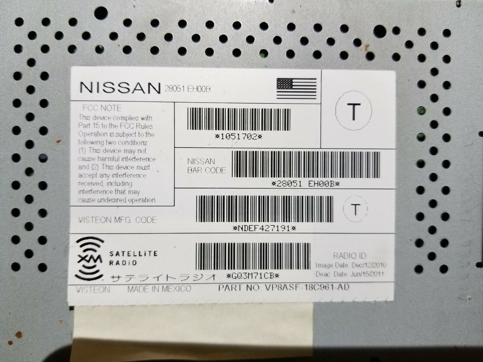 10 11 12 13 Infiniti G37 Coupe Satellite Radio Control Module OEM