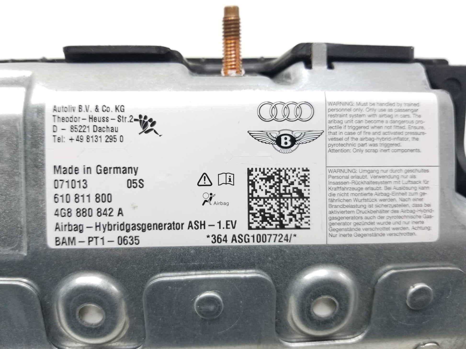 12 13 14 15 Audi A6 Air Bag SRS Right Passenger Dash Knee Airbag