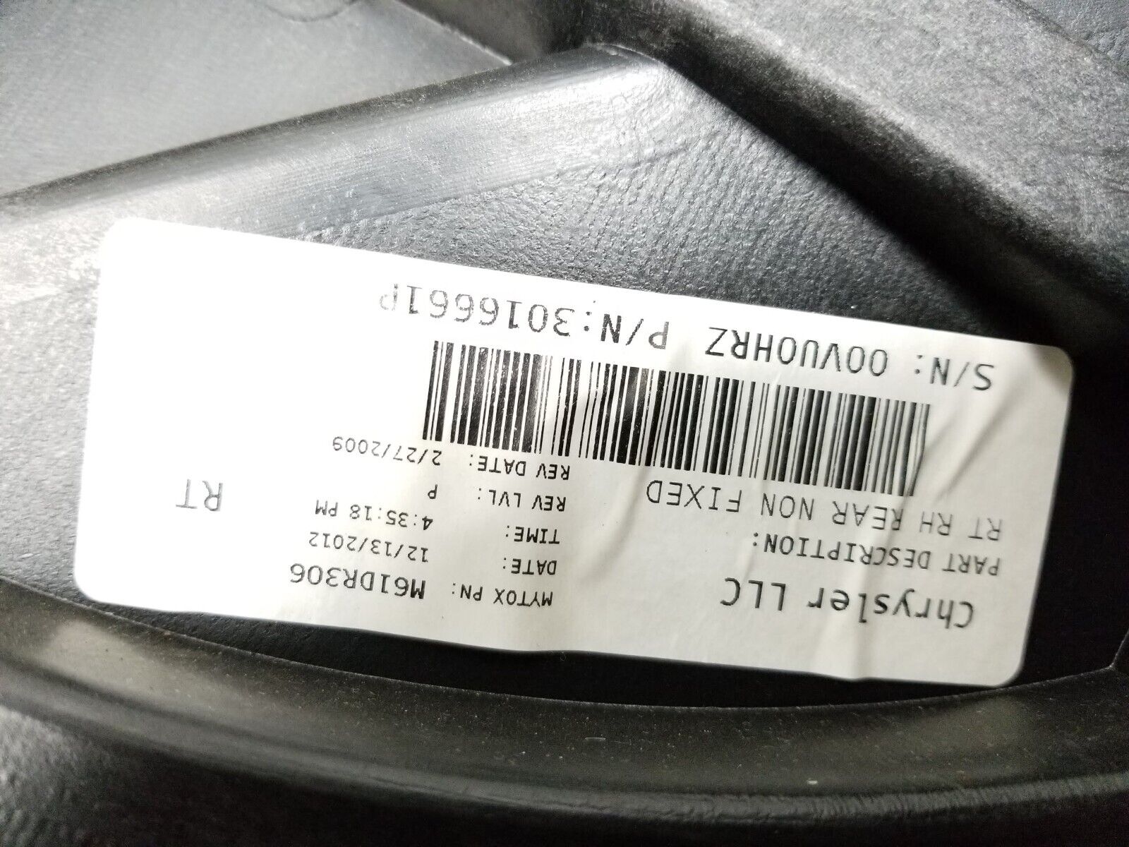 12 - 16 Dodge Grand Caravan Rear Door Window Regulator Passenger Right Side OEM