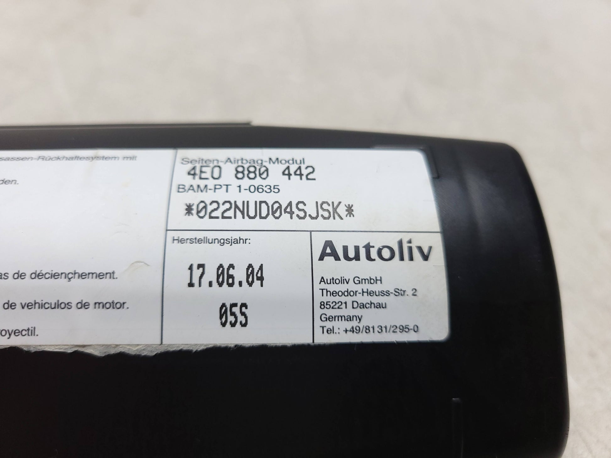 2004-2009 Audi A8 A8L Rear Air Bag SRS AirBag Passenger Side Right OEM