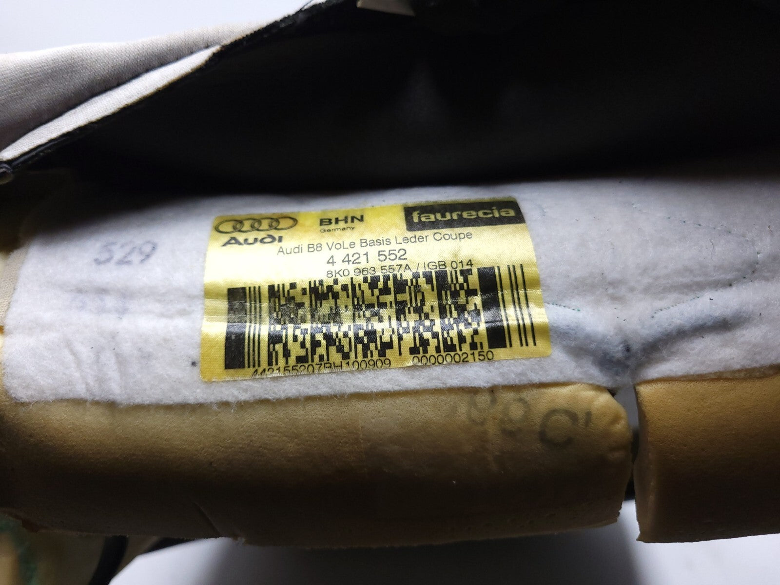 2008 - 2016 Audi A5 Coupe Front Seat Back Cushion Upper Passenger Right OEM