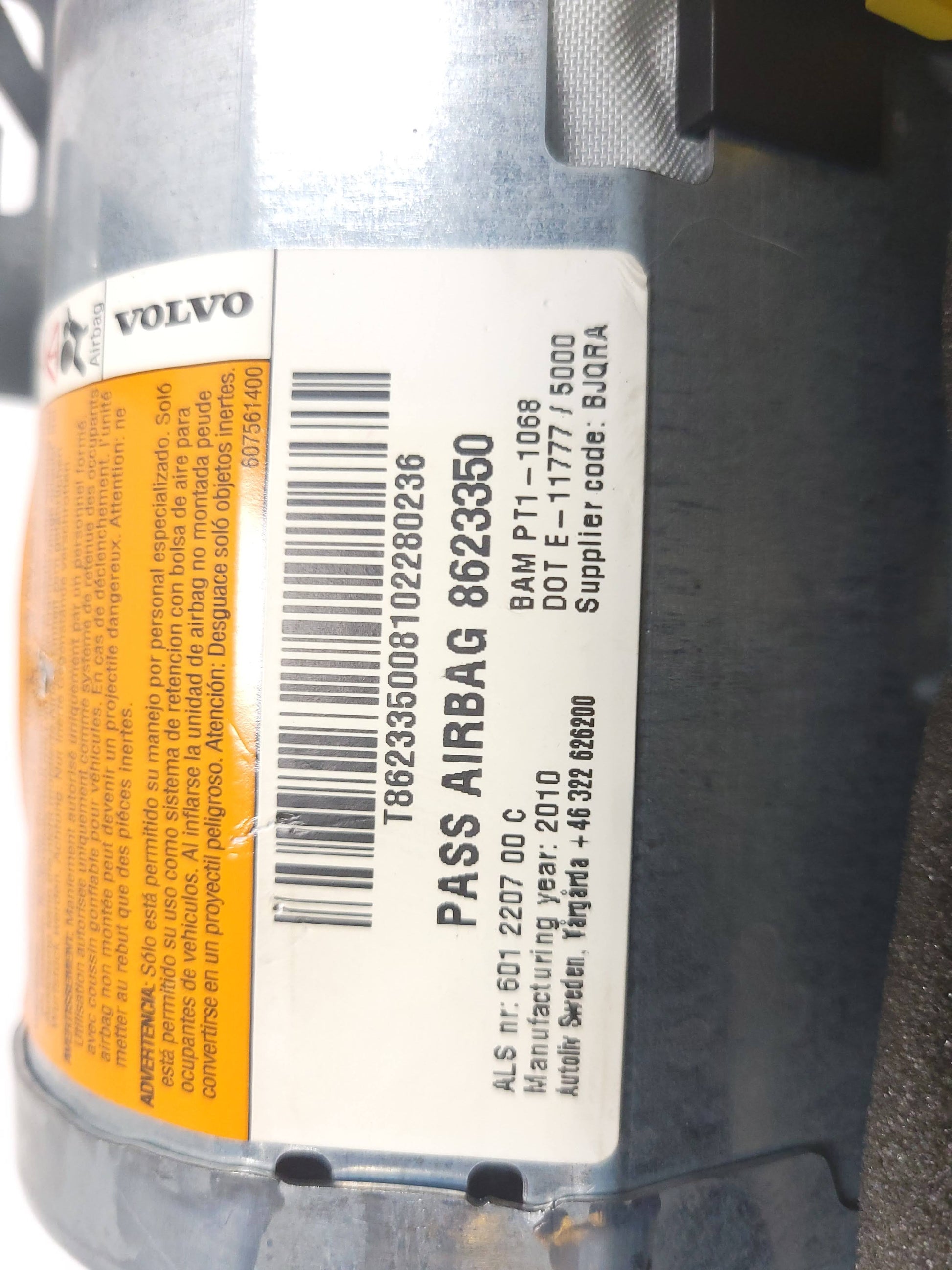 2010-2012 Volvo S40 T5 Dash Dashboard Air Bag SRS Airbag Right Passenger OEM