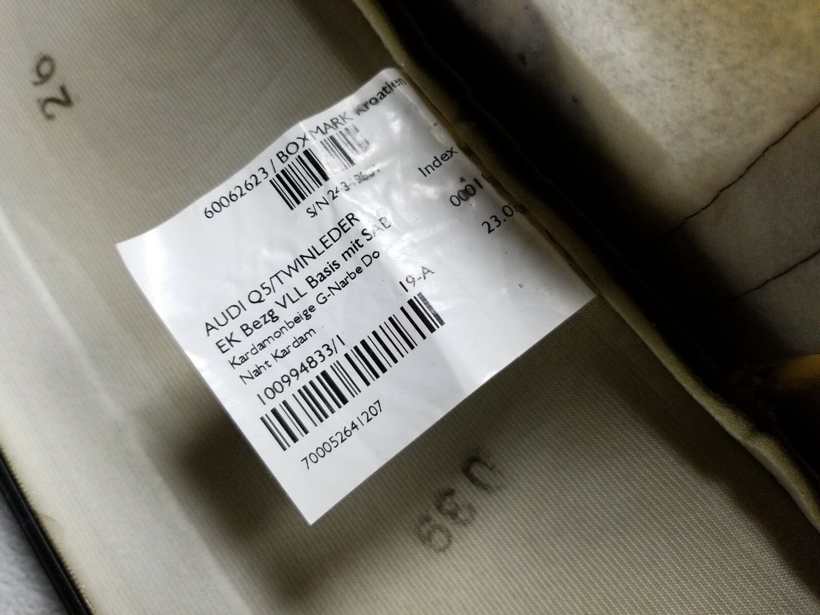 2012 Audi Q5 Front Driver Seat Upper Cushion OEM