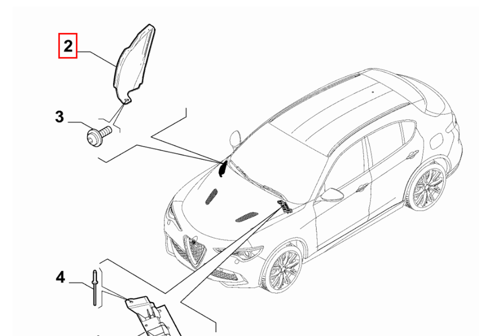 2024 Alfa Romeo Stelvio Front Cowl Windshield Panel Cover Left & Right OEM