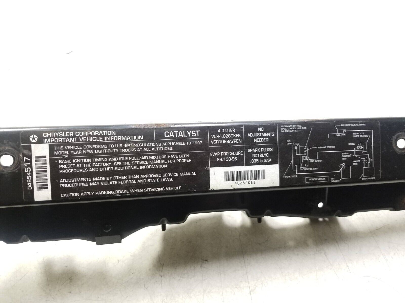 DONOR: - 1997 Jeep Grand Cherokee Laredo / TSi SUV 4D (4.0L I6 MPI) VIN: 1J4GZ58S6VC730180