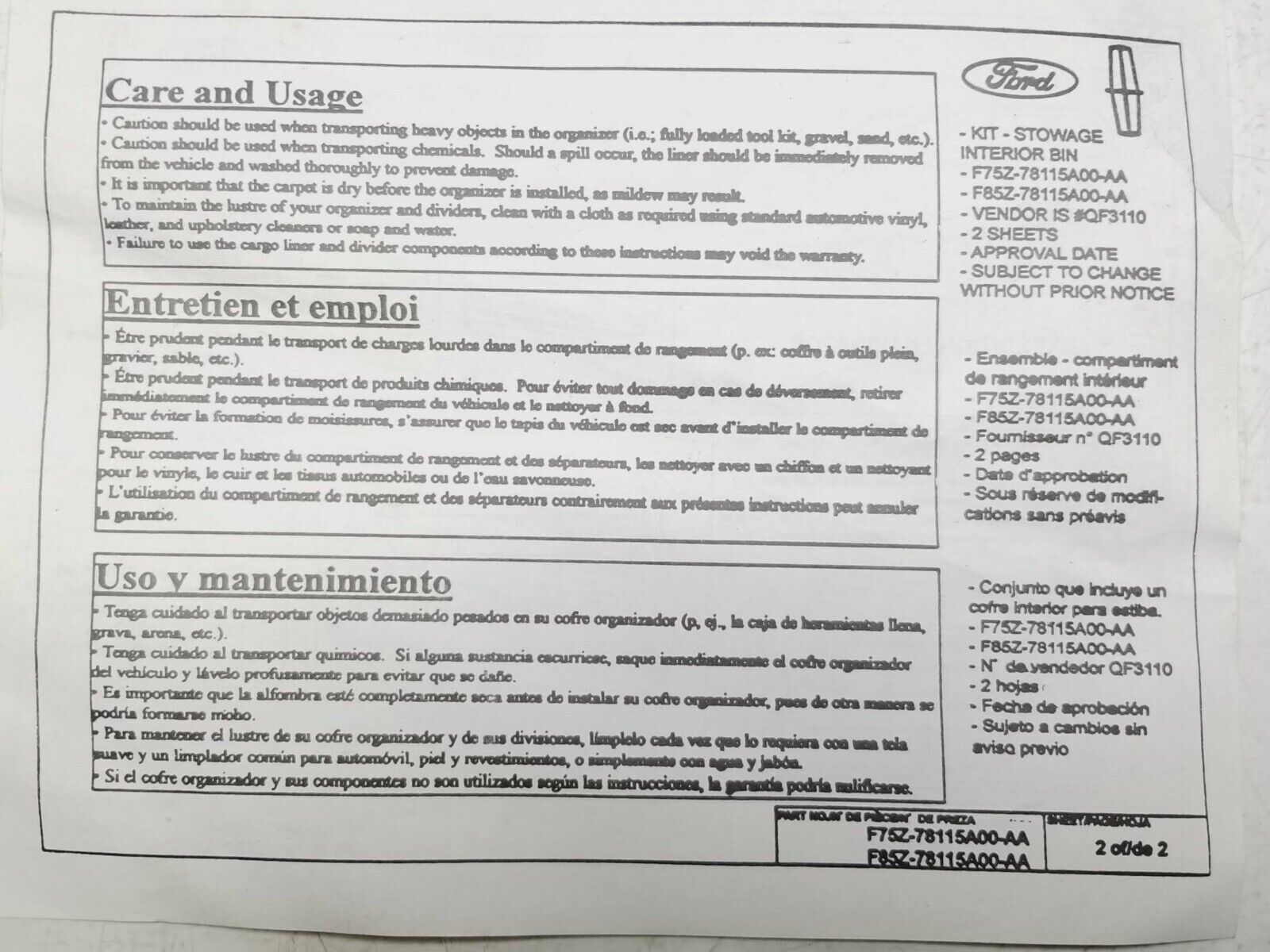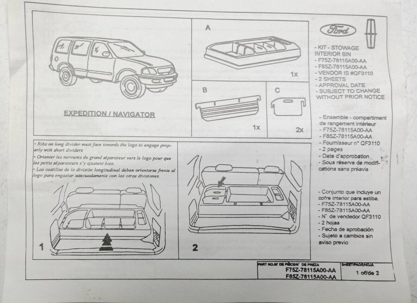 Lincoln Navigator Cargo Organizer Stowage Bin 1998-2002 OEM F85z78115a00aa
